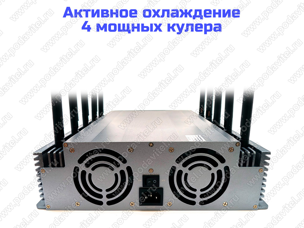 • Активное охлаждение. 4 мощных кулера встроены в корпус подавителя дронов и позволяют устройству работать продолжительное время без перегрева.